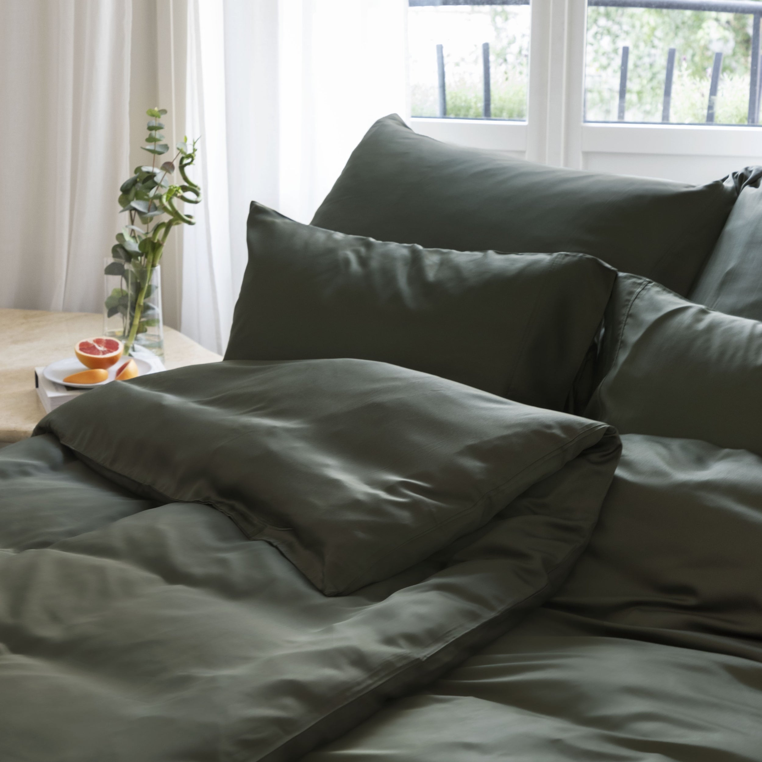 Bambus-Bettwäsche bietet eine sanfte Berührung zur Haut, die Irritationen reduziert und den Schlafkomfort verbessert. Gleichzeitig ist sie schonend für Ihr Haar, minimiert Frizz und Bruch und sorgt für weiches, glänzendes Haar am Morgen. Bambus-Bettwäsche ist die ultimative Pflege für Ihre Haut und Ihr Haar.